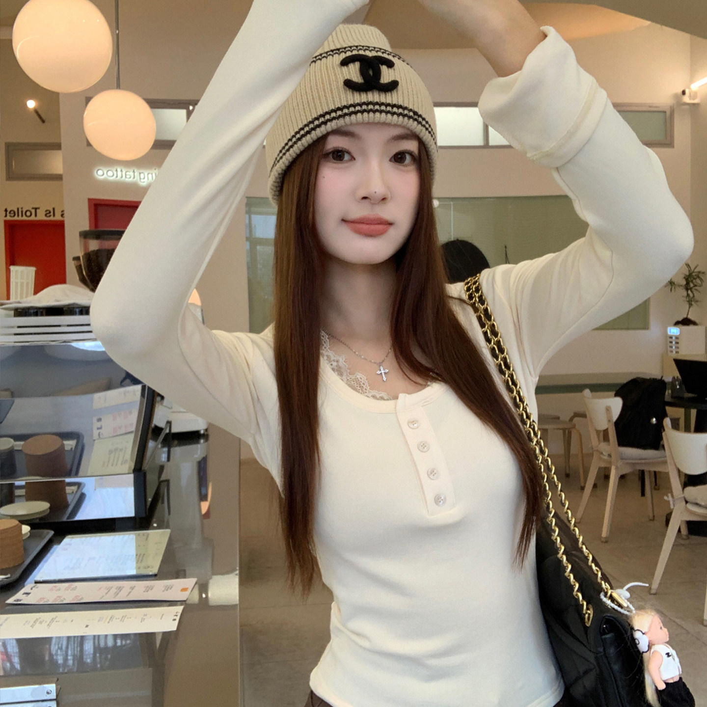【加绒内搭】灰色长袖打底衫女款