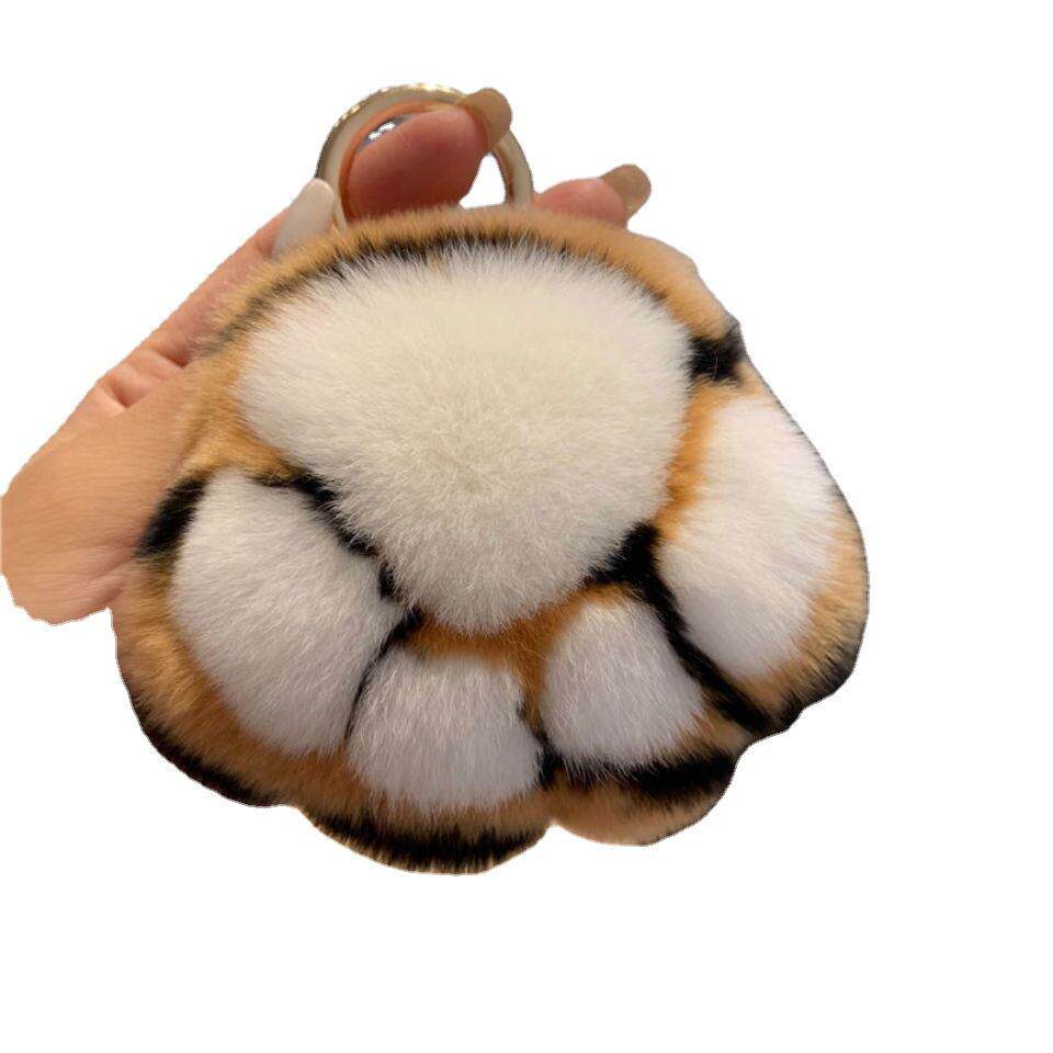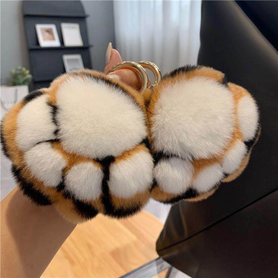 真獭兔毛豹纹小猫爪汽车钥匙扣挂件可爱毛绒球书包包挂饰生日礼物