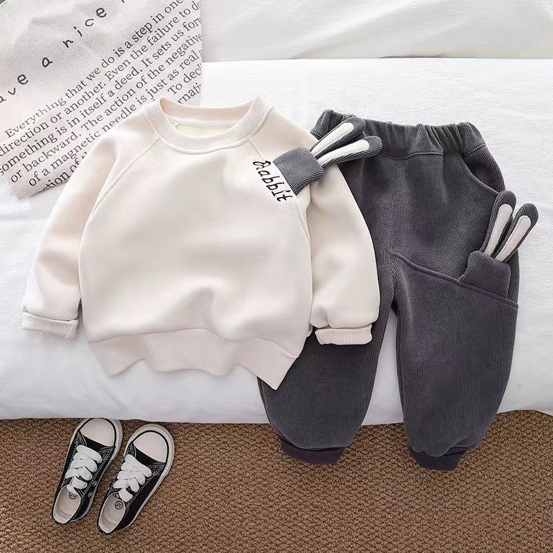 男宝宝秋冬装套装新款儿童洋气男童冬季加绒加厚韩版卫衣两件套潮