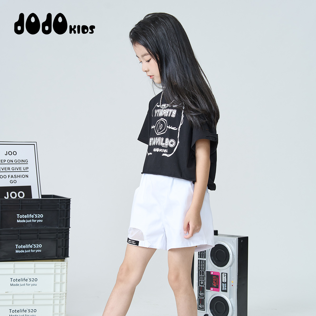 jojo童装女童夏季新款纯棉梭织短裤儿童洋气时髦百搭薄款透气裤子