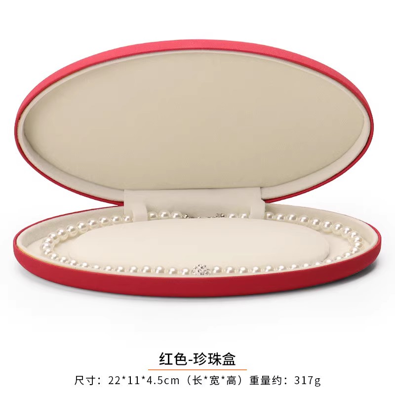 珍珠项链包装盒高档椭圆形首饰盒收纳盒绒布珠宝礼品盒翻盖饰品盒