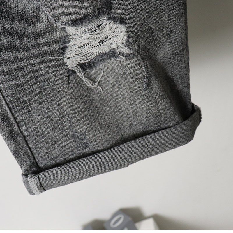 重磅 复古破洞男士夏装弹力修身牛仔中裤潮流小脚短裤复古五分裤
