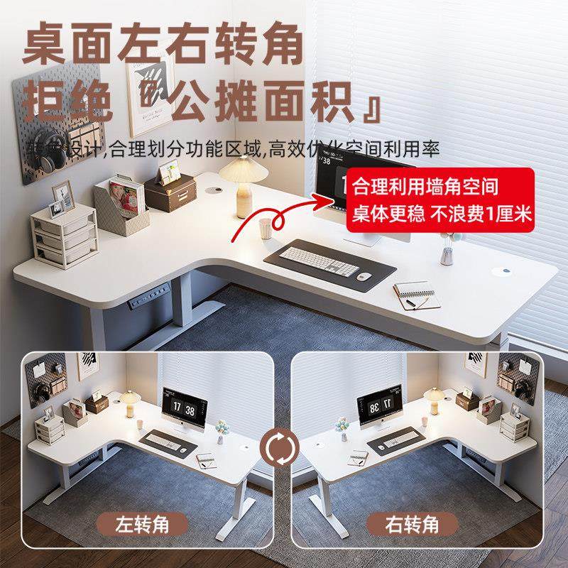 转角电动升降桌家用实木学习桌办公桌工作台L型智能电动拐角书桌
