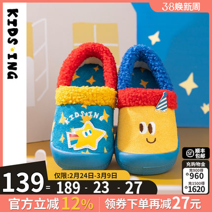 kidsing可迪星宝宝棉拖冬季新款男女童大童室内居家防滑软底棉鞋