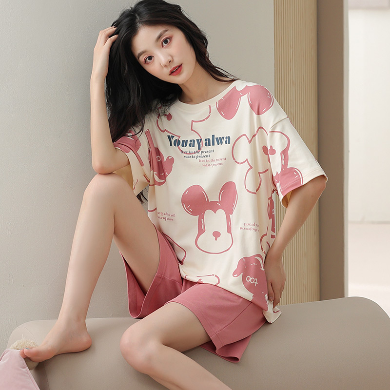 2025年新款睡衣女款夏季短袖纯棉薄款春秋大码可爱家居服全棉套装