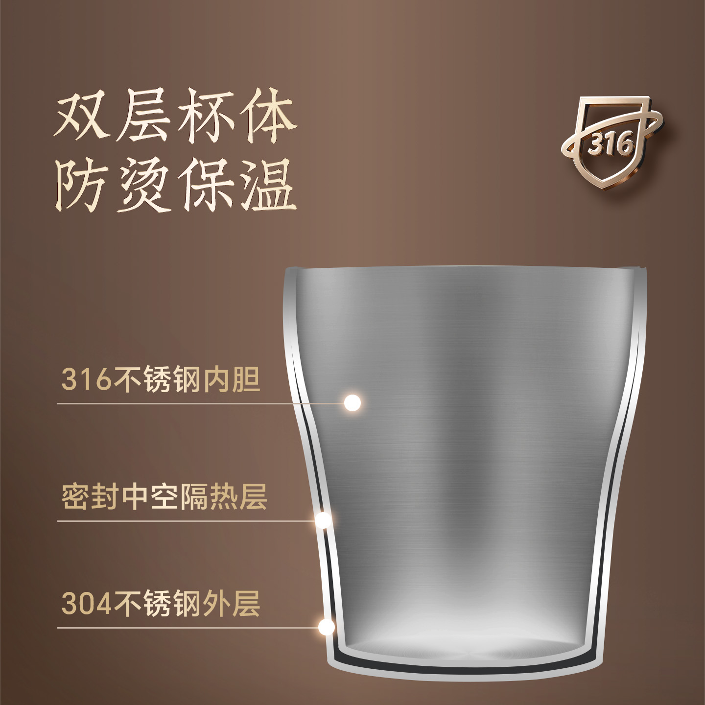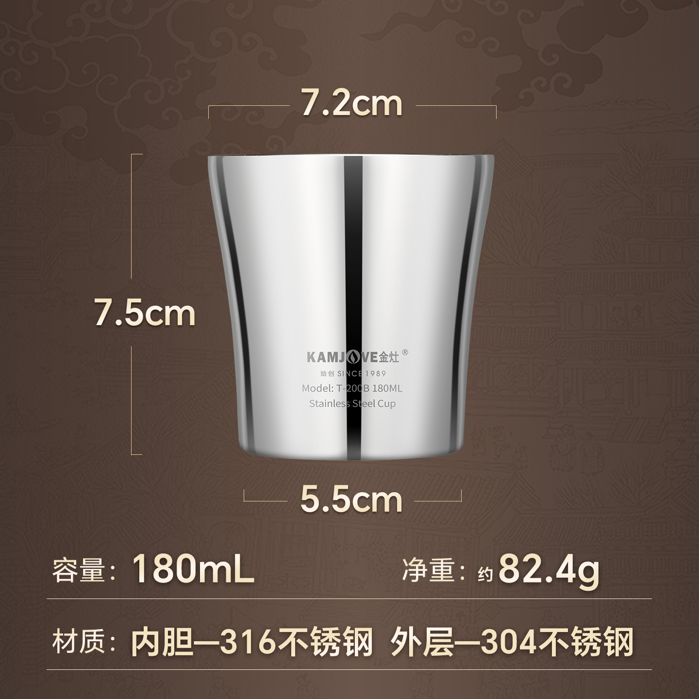 金灶T-200B双层茶杯水杯办公室不锈钢直饮杯咖啡杯喝茶茶具泡茶杯