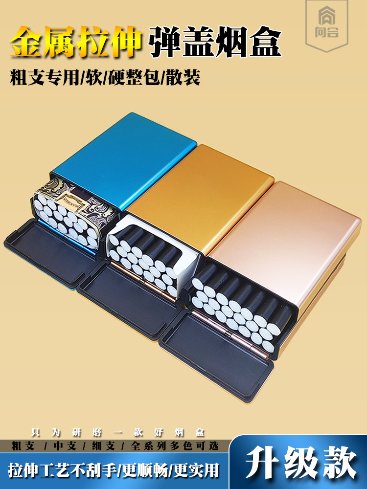 新品金属粗细支20支装自卷整包软硬通用烟盒个性创意便携塑料弹盖