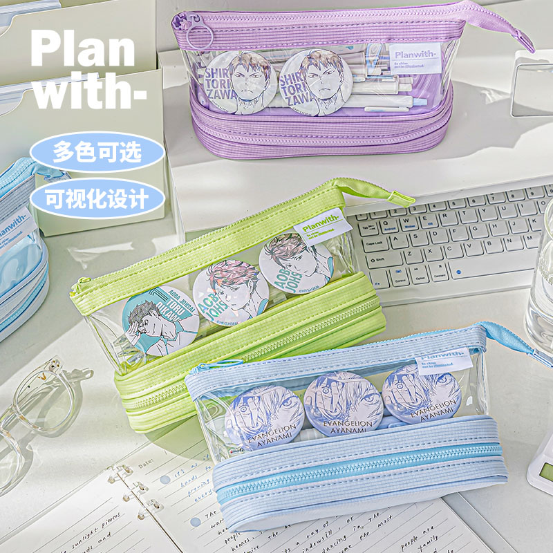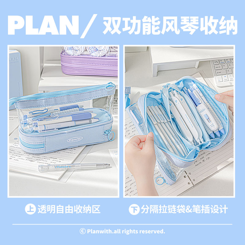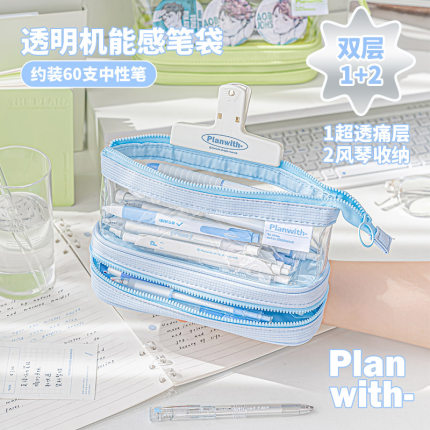 Planwith透明笔袋2025年新款大容量高颜值ins风双层文具袋初高中男女生学生用文具盒痛包铅笔盒小众不撞款