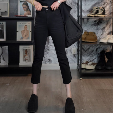 夏季女薄款侧开叉九分小脚牛仔裤