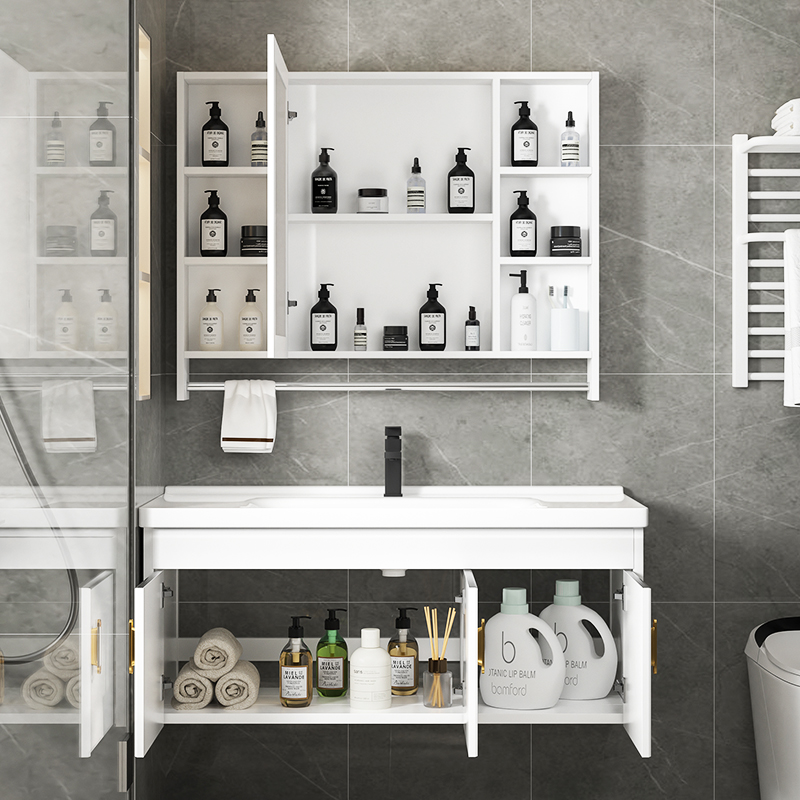 太空铝洗手盆柜组合小户型家用挂墙式脸盆卫生间一体陶瓷盆洗漱台
