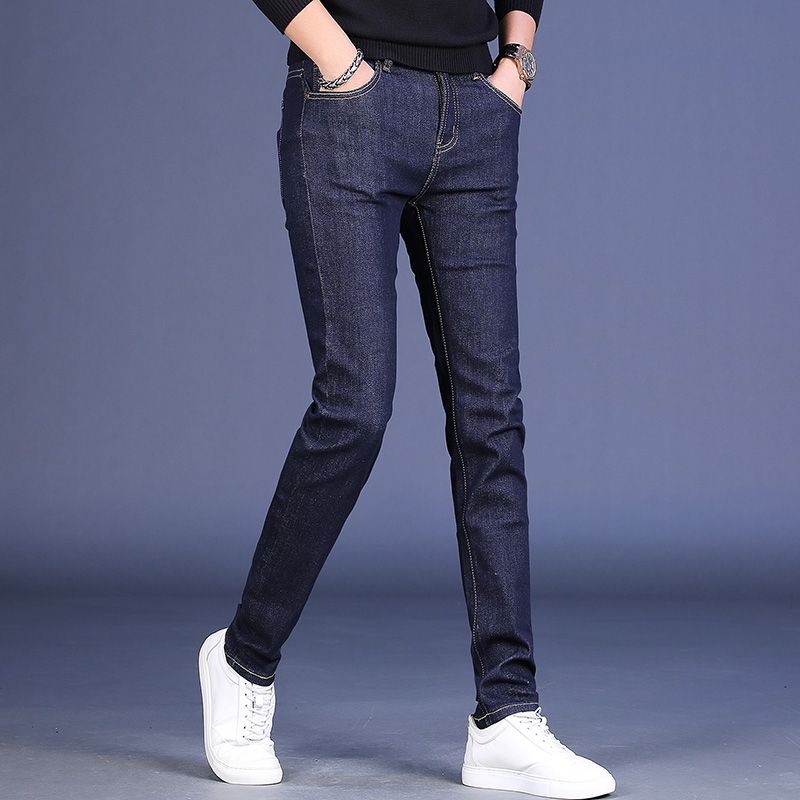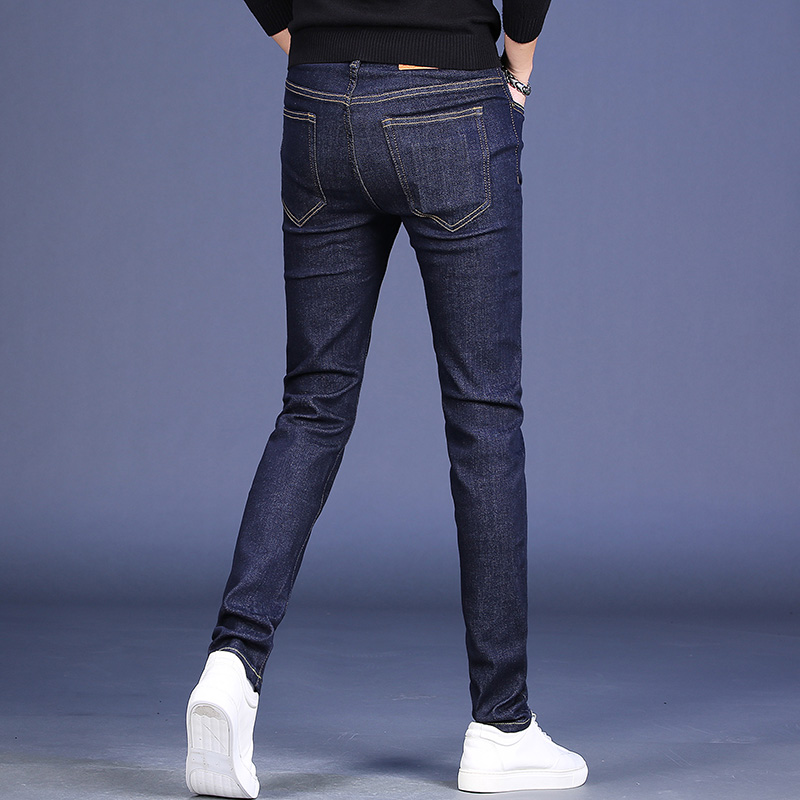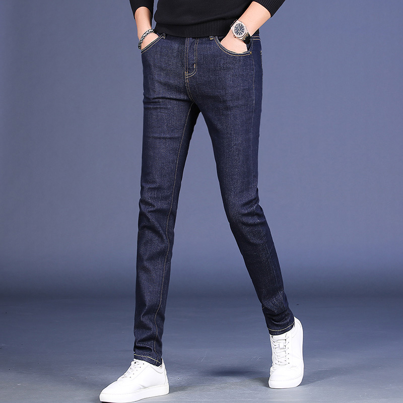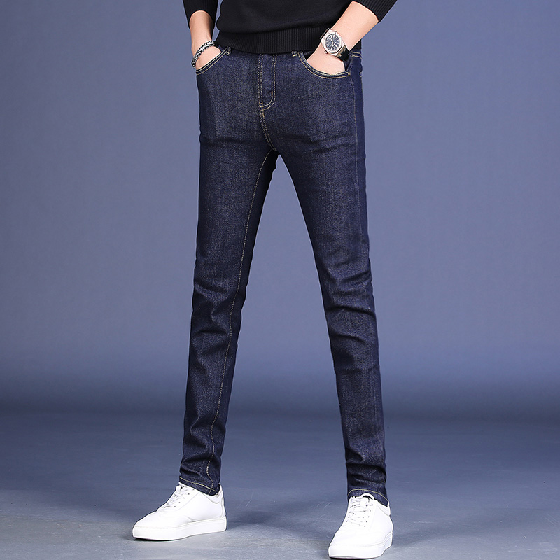 男士深蓝色牛仔裤男2025年新款秋季潮牌修身直筒弹力修身小脚裤子