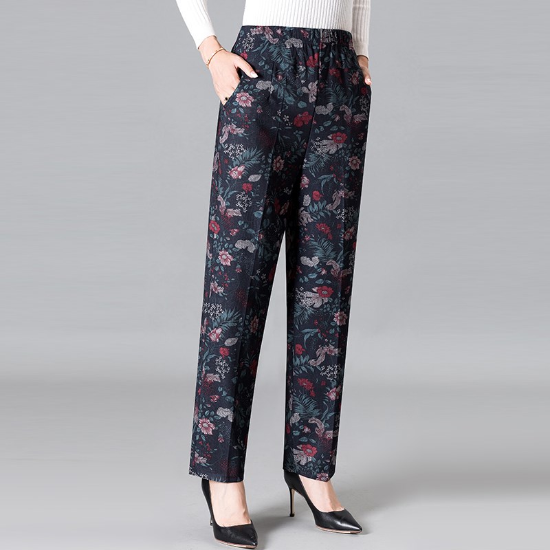 妈妈裤子春秋中老年女裤冬季特体加肥加I大码老人加绒奶奶直筒长