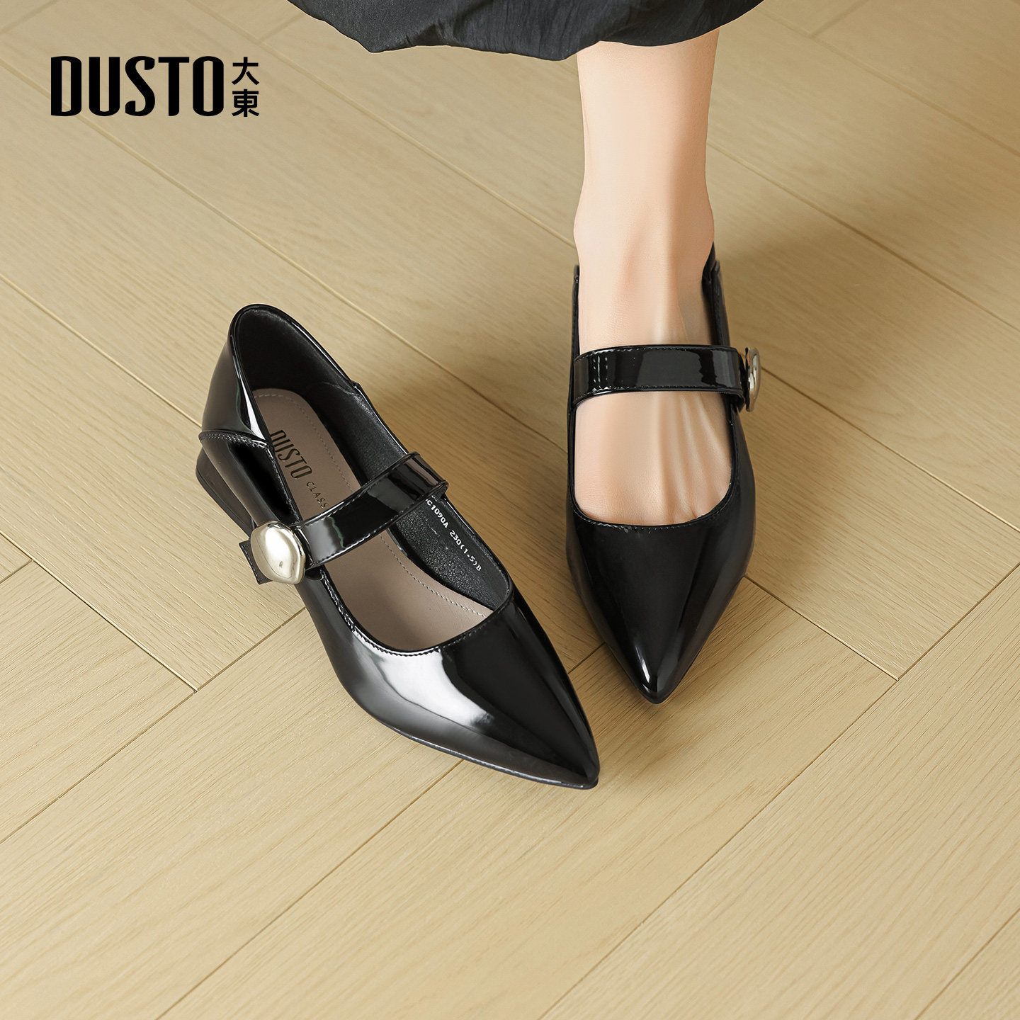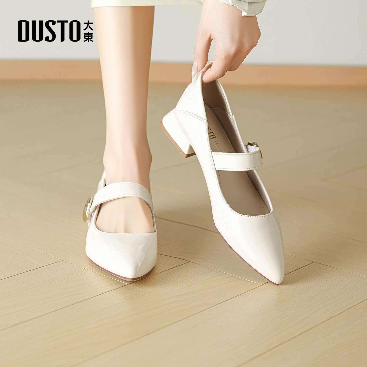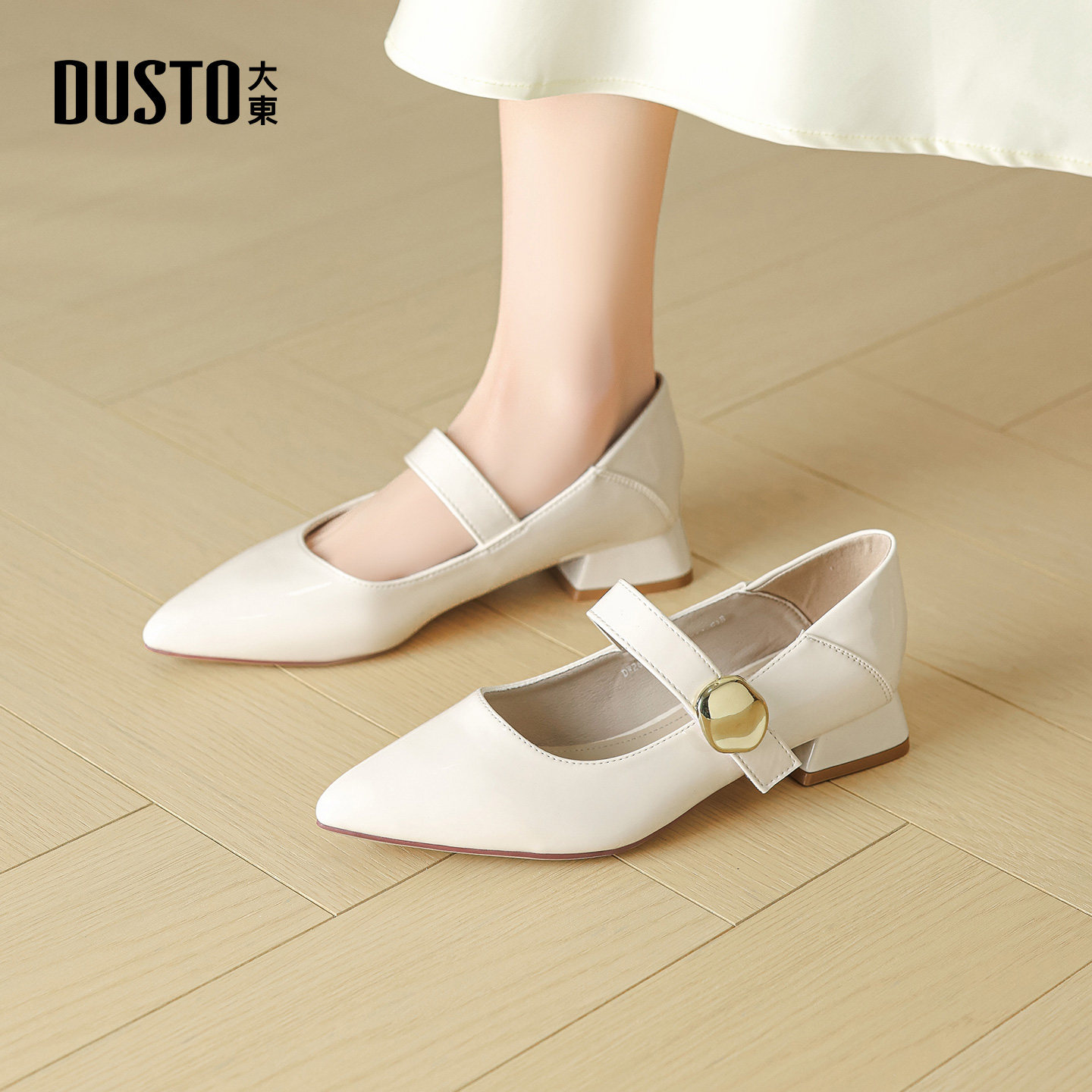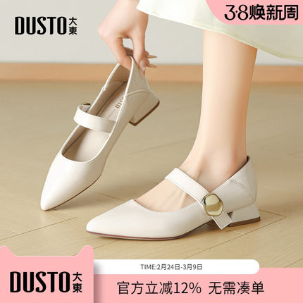 大东dd尖头单鞋女2026新款春季低跟鞋粗跟小皮鞋法式玛丽珍女鞋子