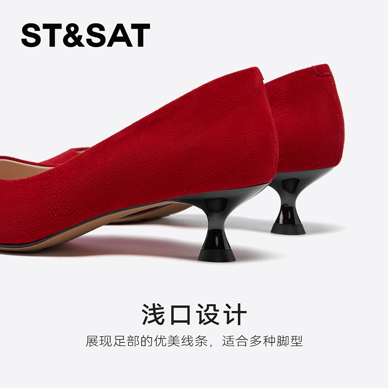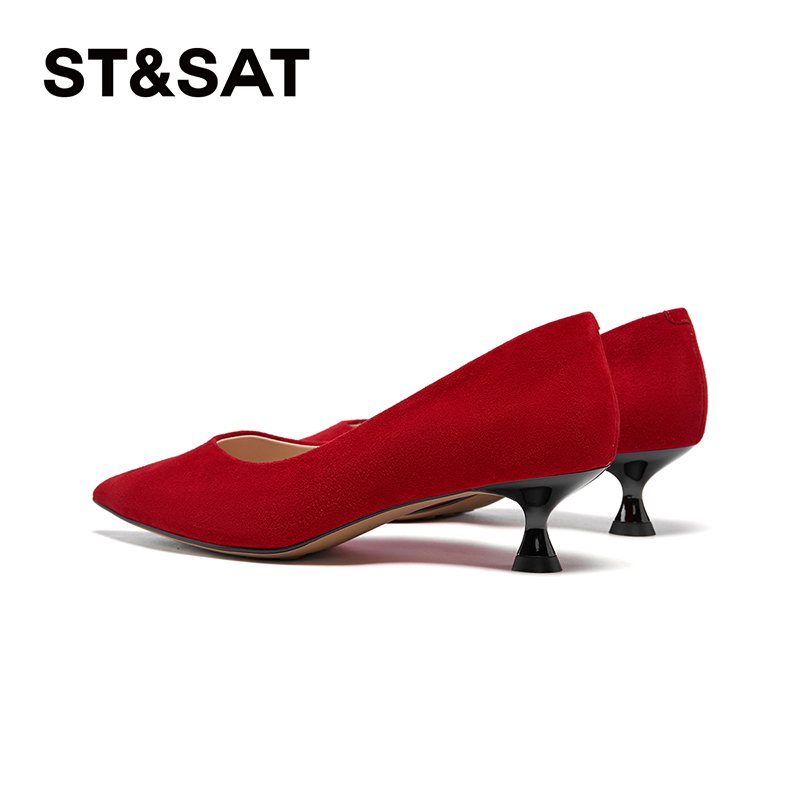 星期六红色热烈大方低跟女鞋春秋款尖头优质浅口单鞋SS41111932