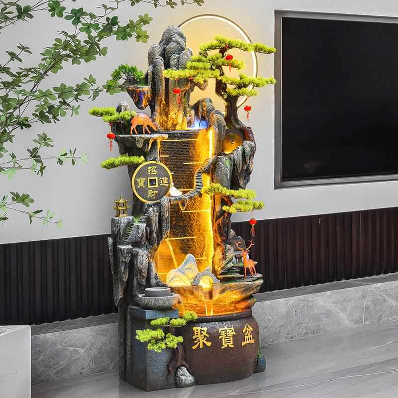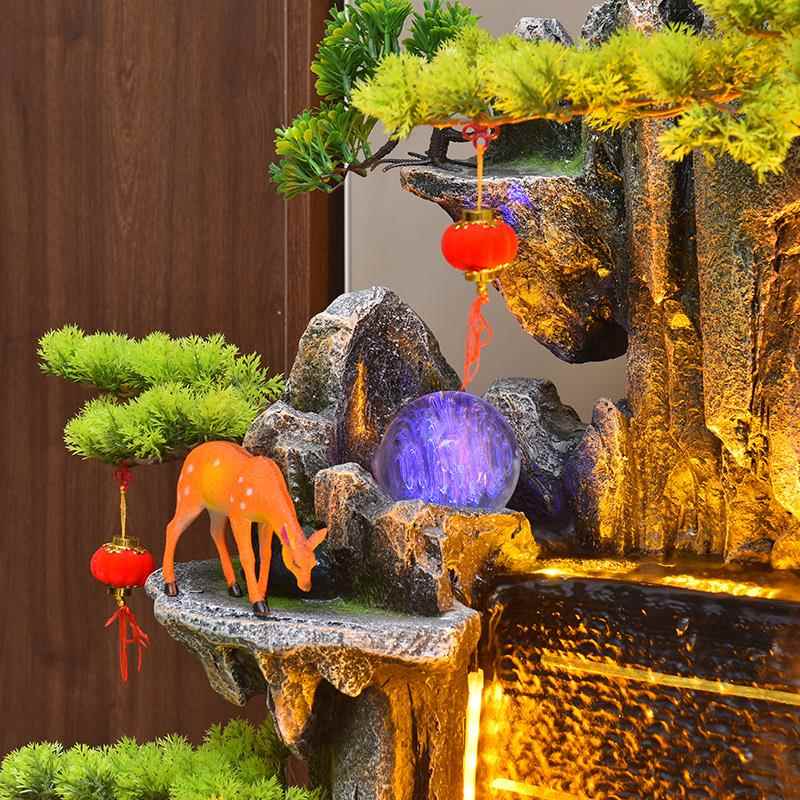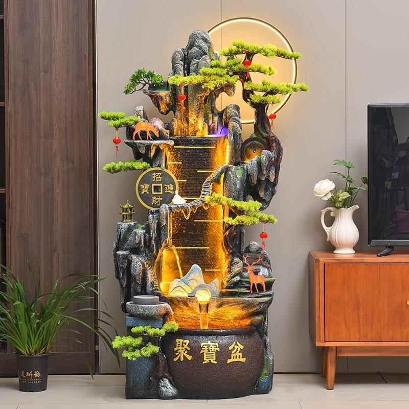 假山流水生财喷泉风水轮招财落地摆件客厅鱼池高山盆景加湿器水景