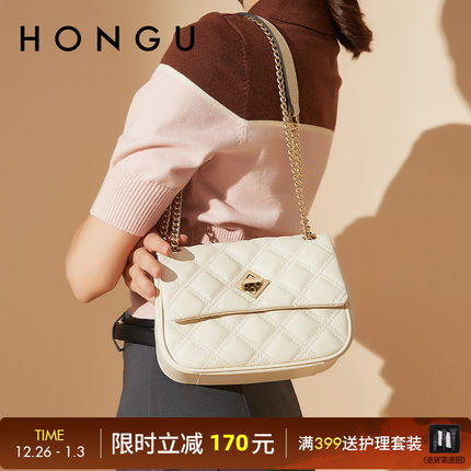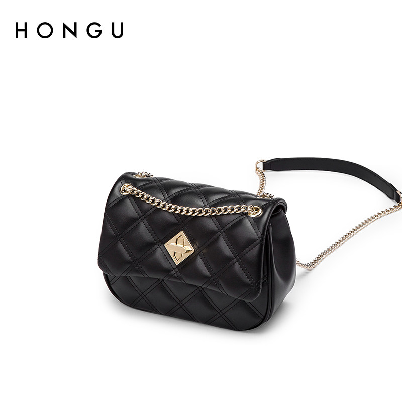 HONGU/红谷简约链条包女包新款牛皮菱格单肩包时尚百搭通勤斜挎包