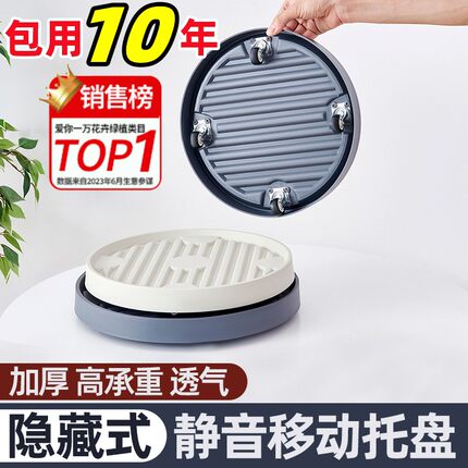 移动花盆托盘带轮底盘垫底座滚轮万向轮接水盘隐形轮盆栽塑料滑轮