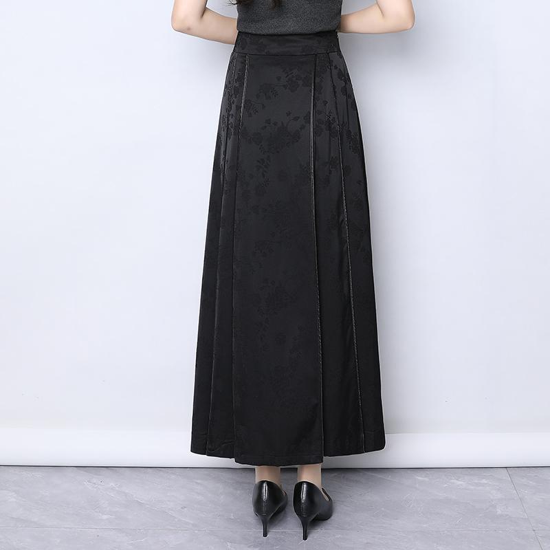 新中式国风马面裙提花百褶长裙女春秋2025新款高腰显瘦宽松A字裙