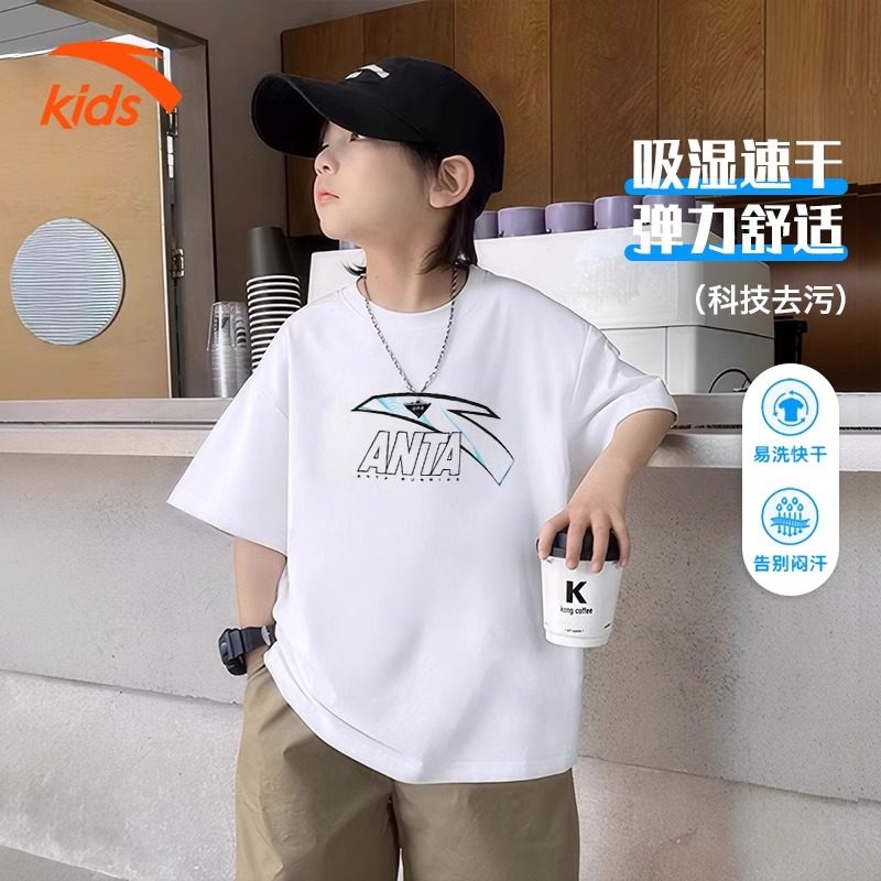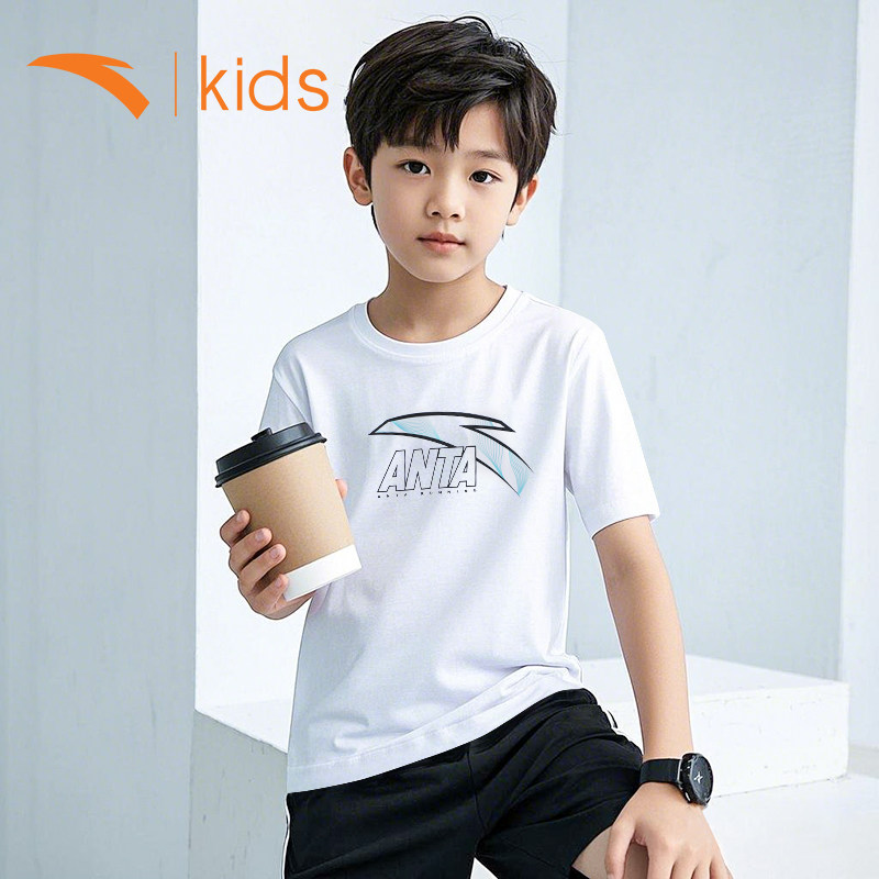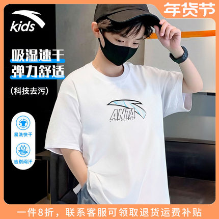 安踏童装男童短袖t恤秋季儿童运动上衣大童男孩学生透气半袖夏装