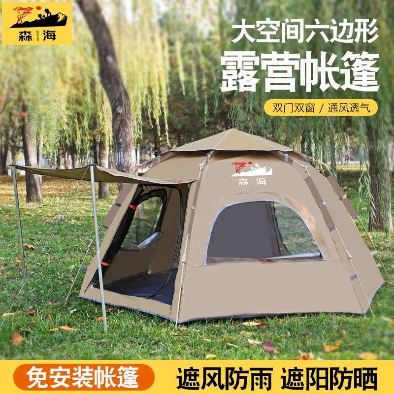 户外六角露营帐篷全自动速开野营野餐防晒遮阳防水帐篷便携式折叠