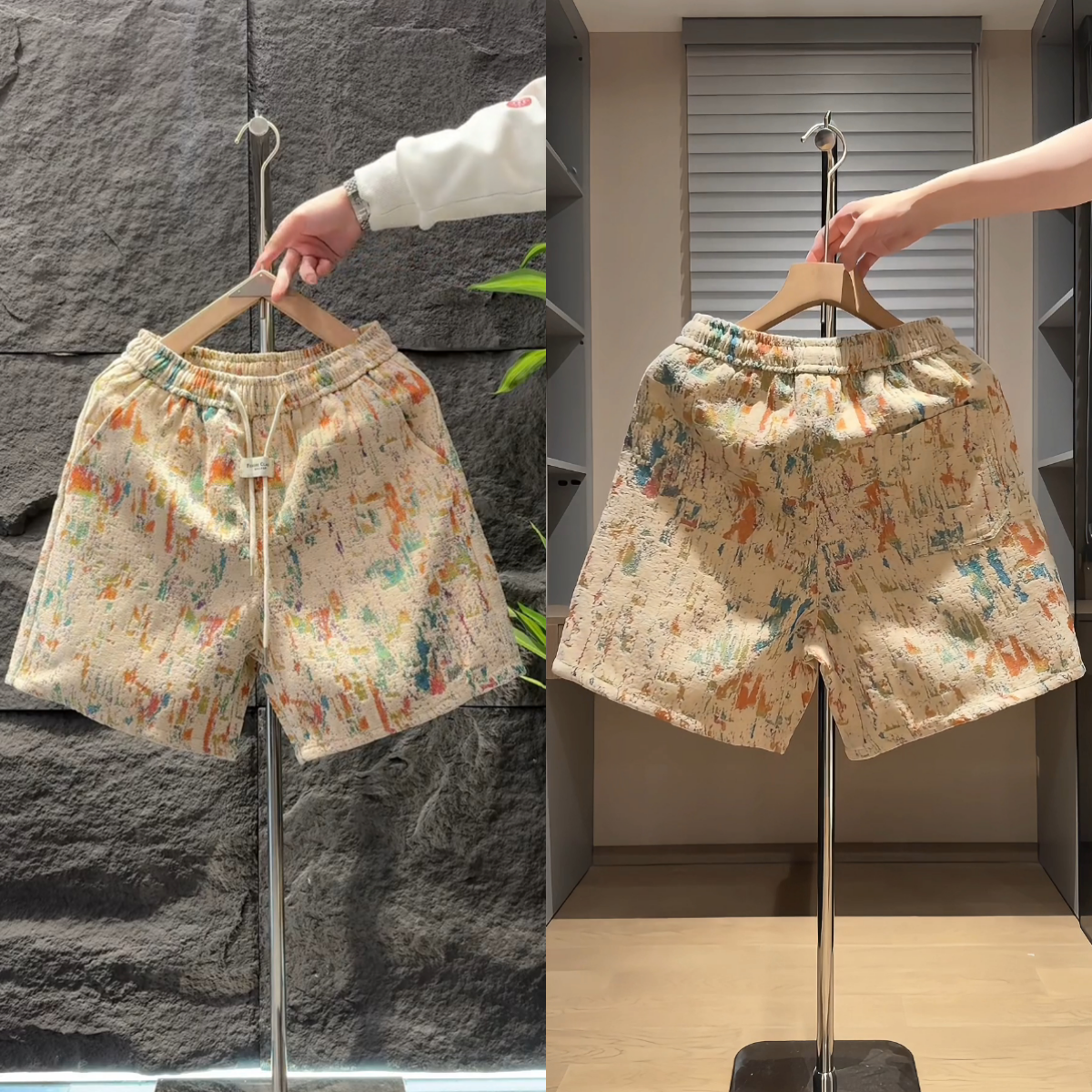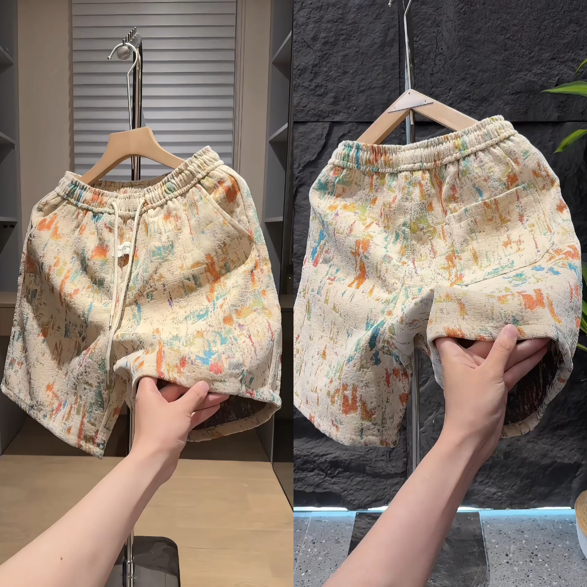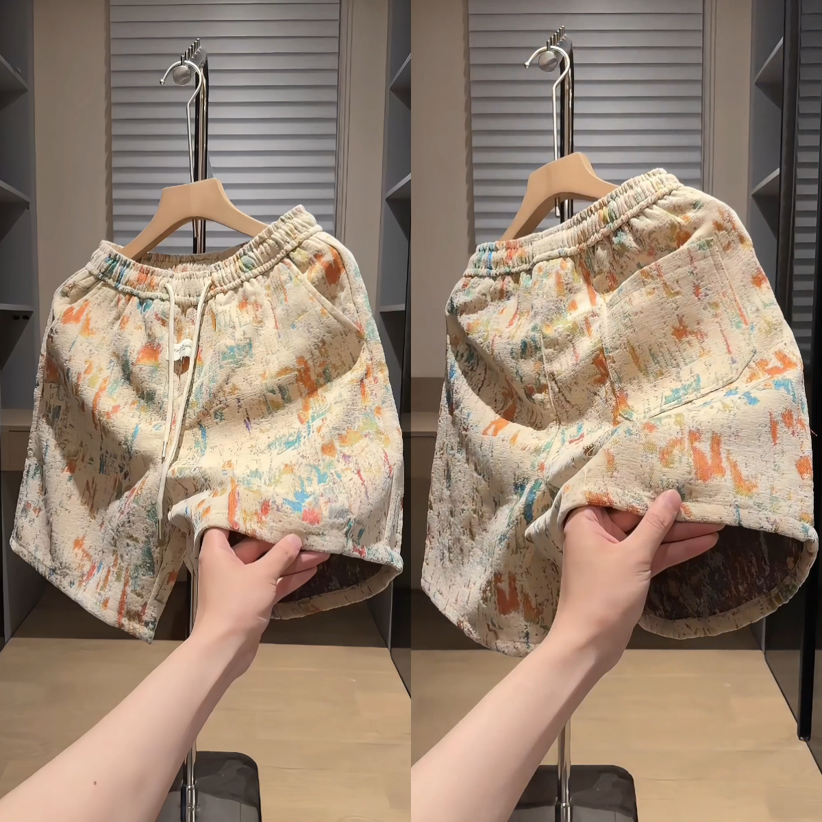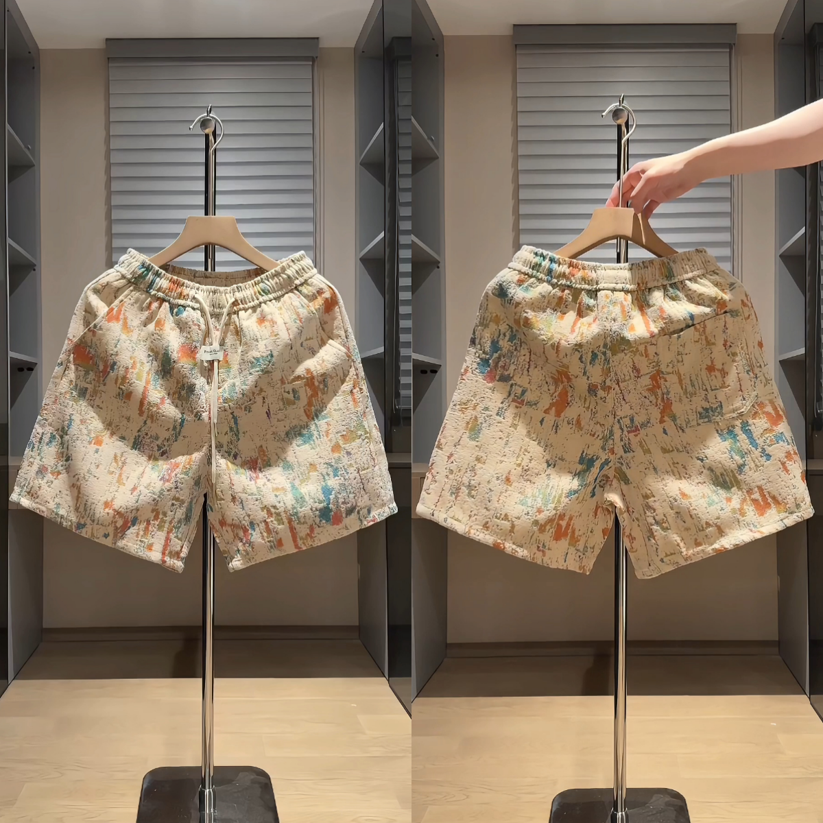 【直播间同款】时尚潮牌短裤男夏季新款色织提花民族风设计四分裤