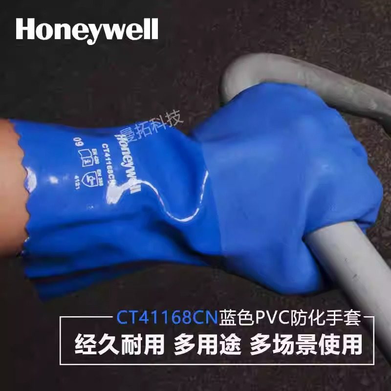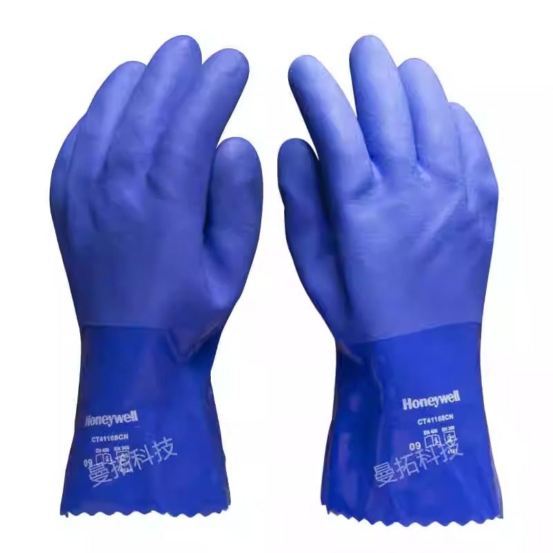 霍尼韦尔耐磨防化学实验室防酸碱防护劳保工作手套PVC加厚14-662