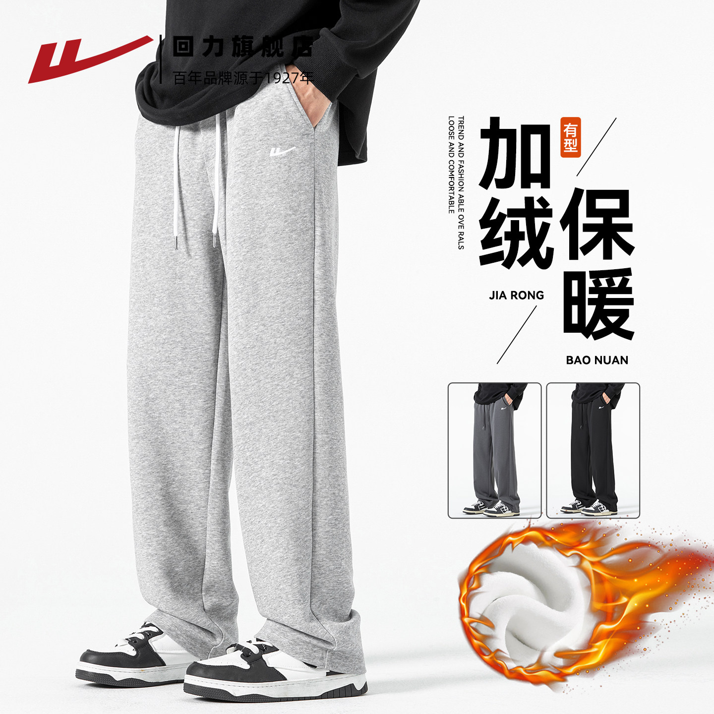 回力直筒运动裤子男秋冬加绒卫裤