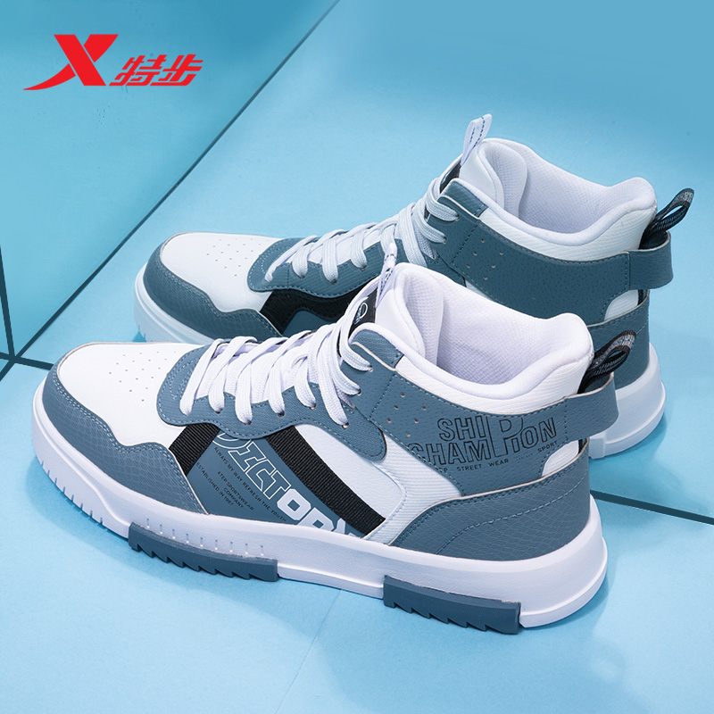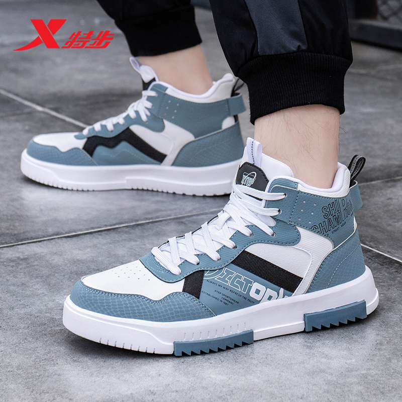 特步男鞋高帮板鞋皮面休闲鞋子官方2025秋季青少年潮鞋运动鞋男