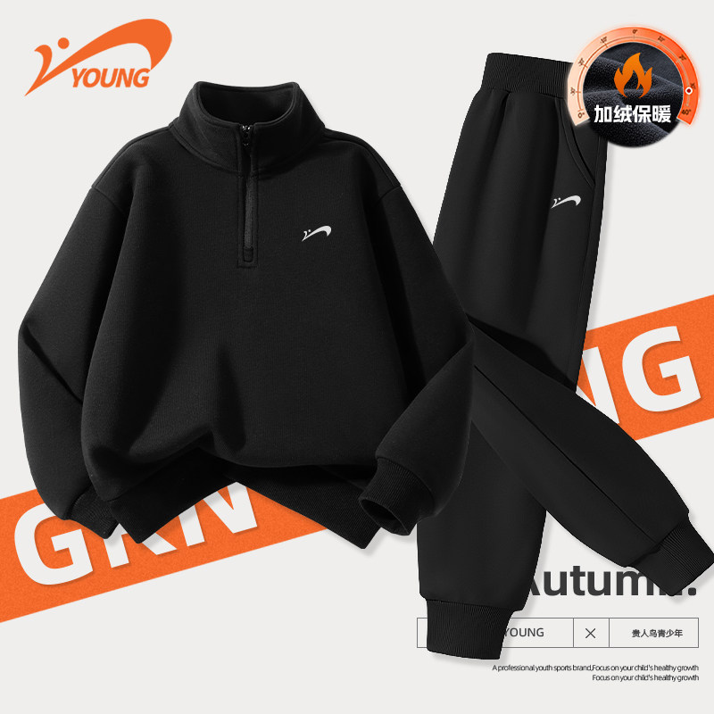 贵人鸟童装男童冬装套装2025新款大童冬季运动服儿童加绒加厚卫衣
