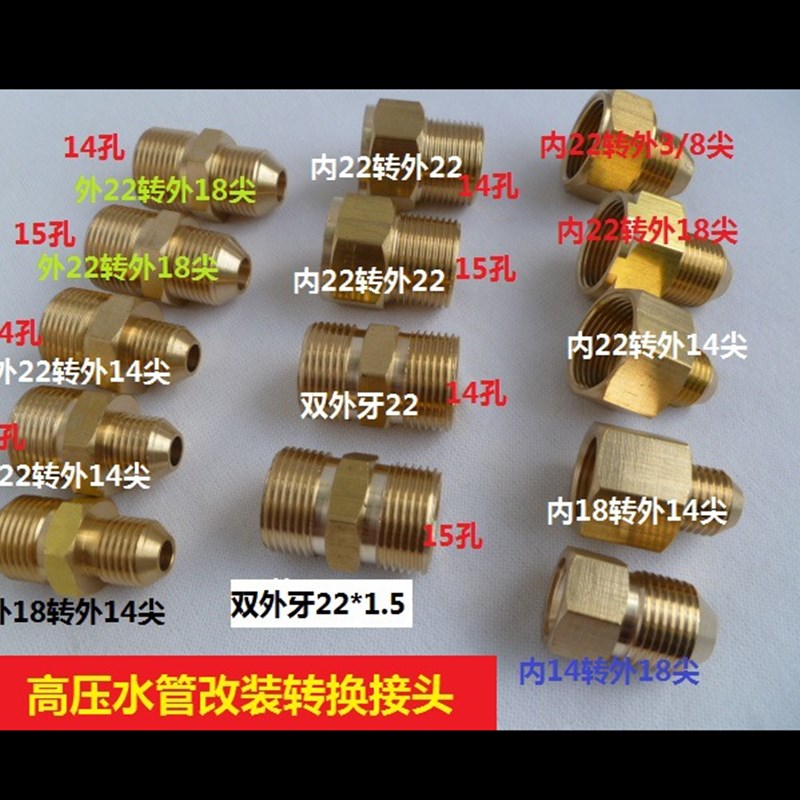 高压清洗机水枪水管转换接头 14/18/22变径接头 洗车机螺纹转换接