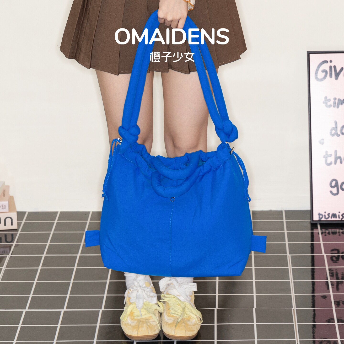 橙子少女小众尼龙布抽绳两用双肩包2026新款大容量轻便通勤单肩包