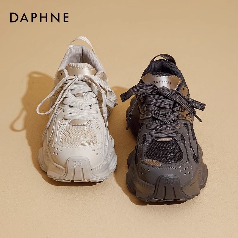 达芙妮灰色老爹鞋女款加绒厚底复古2025新款秋冬休闲保暖运动鞋子