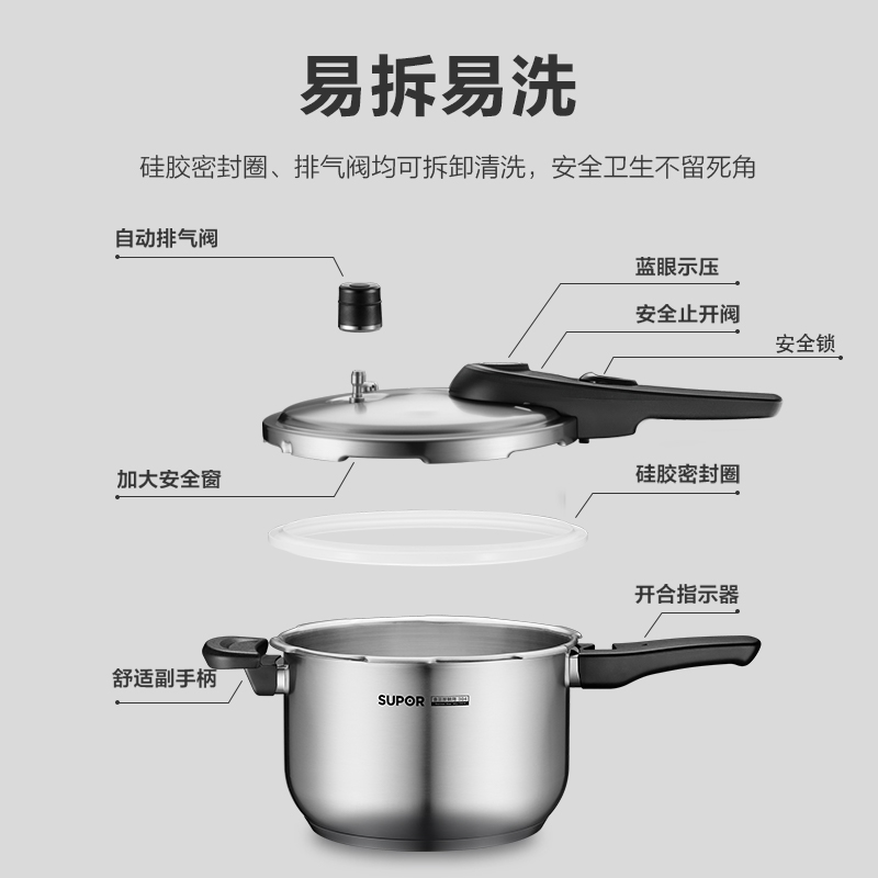苏泊尔高压锅家用燃气电磁炉通用蓝眼压力锅304不锈钢防爆新款