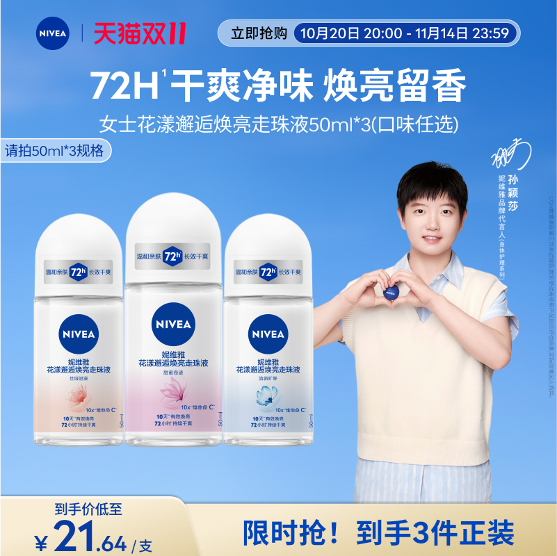 【双11狂欢】妮维雅花漾走珠腋下走珠女男士止汗持久干爽官方