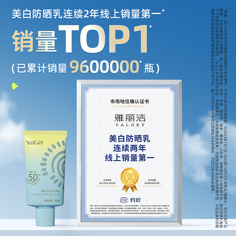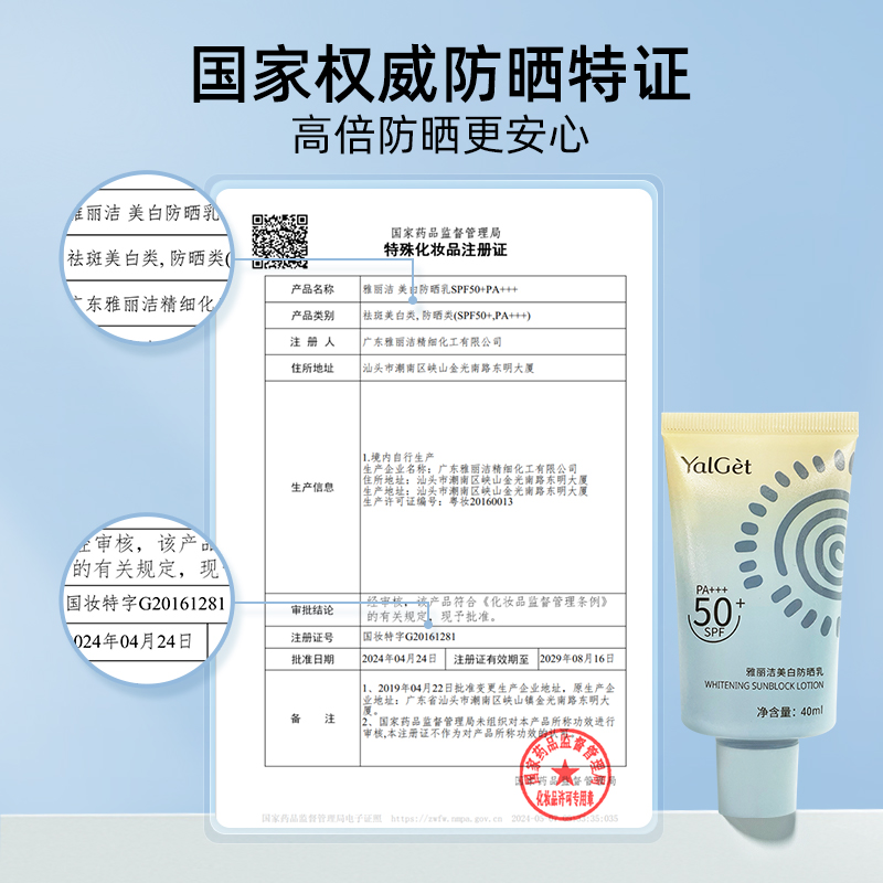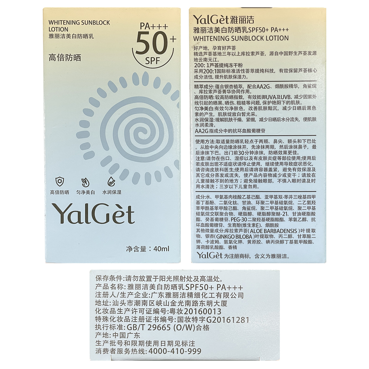 Yalget/雅丽洁防晒霜高倍防晒防紫外线美白隔离清爽不油腻防晒乳