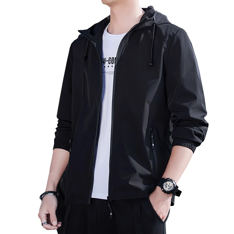 男士外套春秋季薄款连帽防风冲锋衣休闲运动上衣服潮男生风衣夹克
