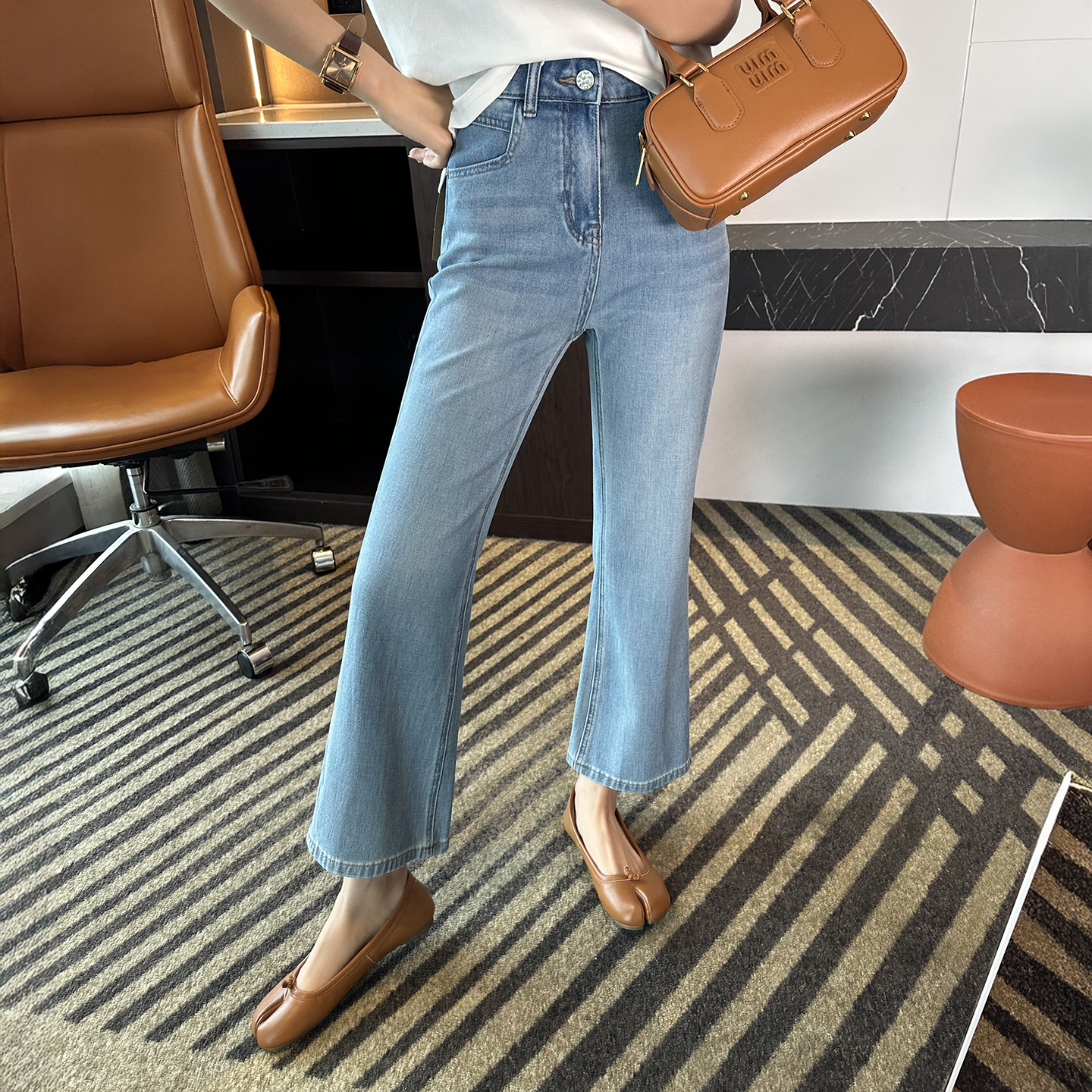 天生超模腿~!高腰九分喇叭牛仔裤女夏季新款修身弹力显瘦微喇裤