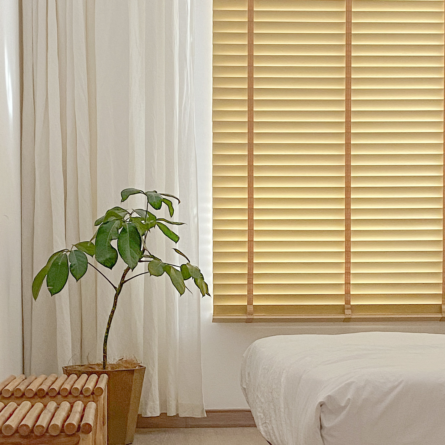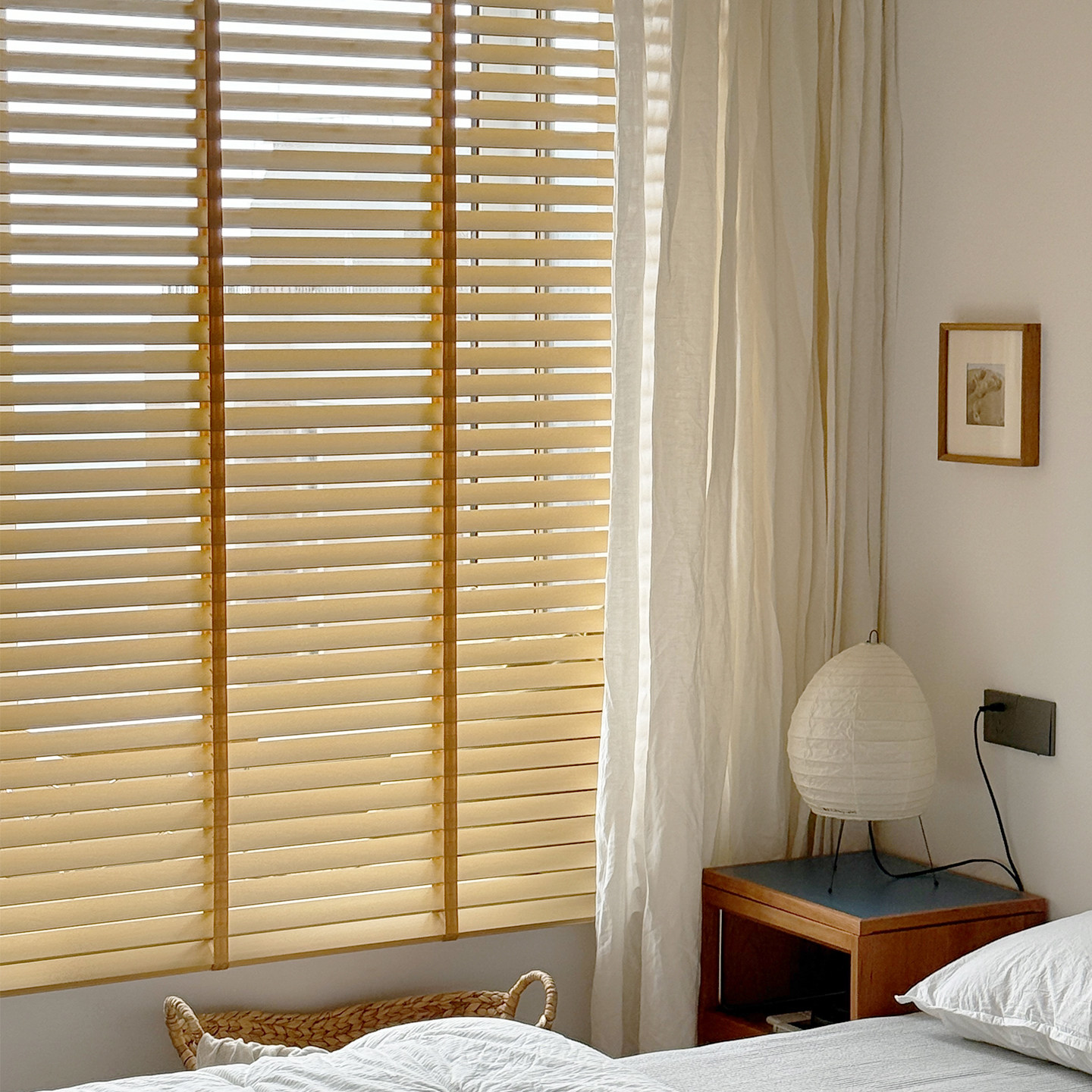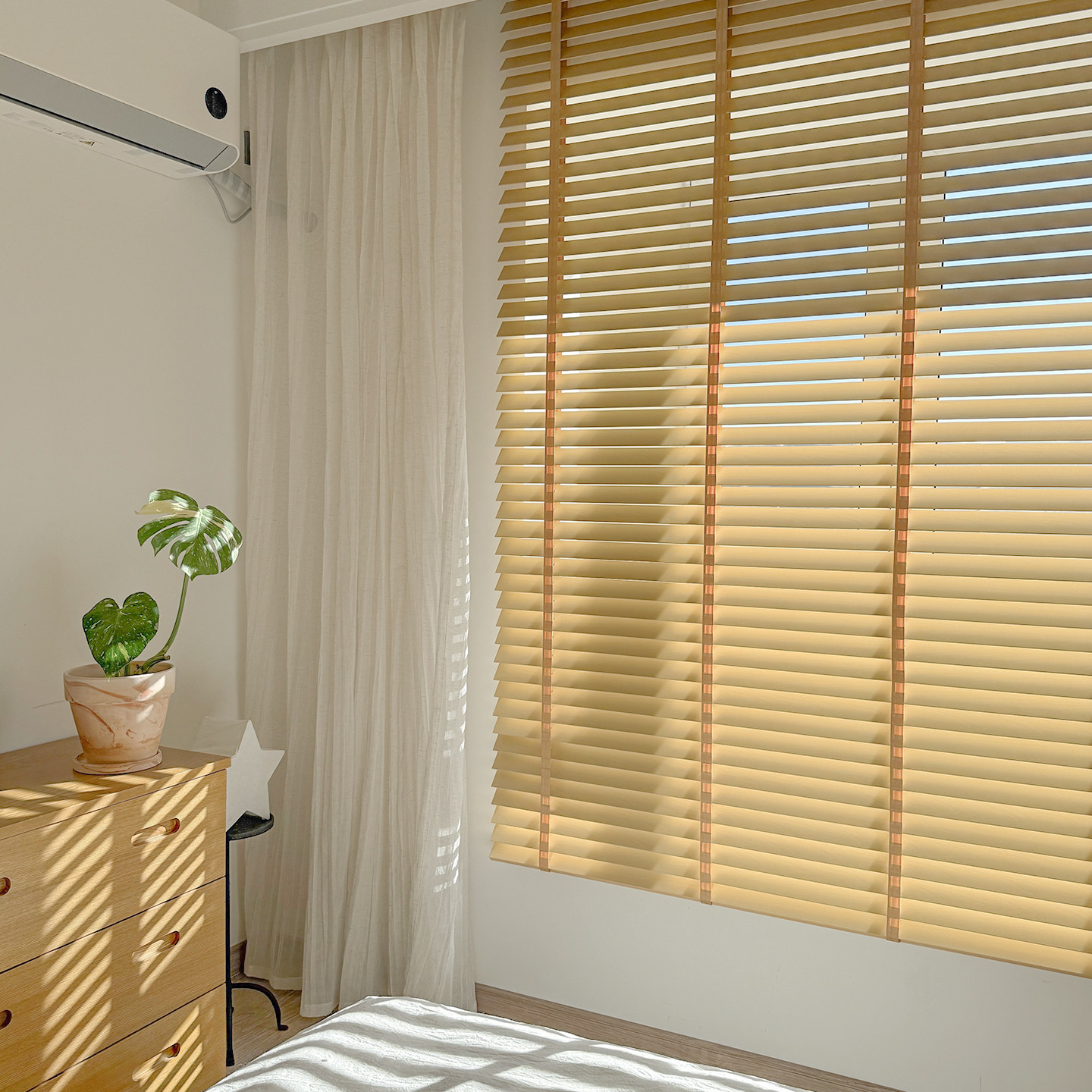 慕安娜奶油风实木百叶窗帘卧室客厅阳台遮光智能电动木质卷帘定制