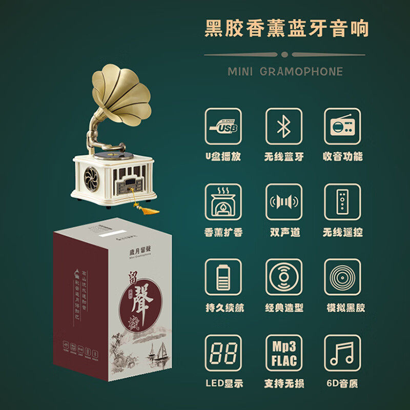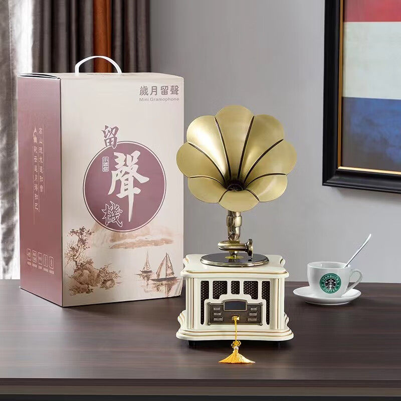美人蕉复古CD留声机家用仿真黑胶唱片机D90蓝牙音响礼物送女友