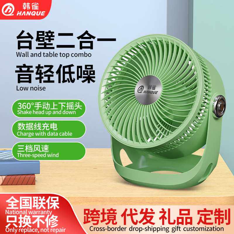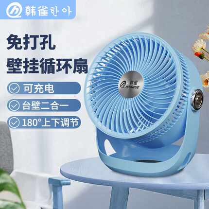 韩雀空气循环扇摇头循环扇家用香熏台壁两用电风扇折叠风扇充电款