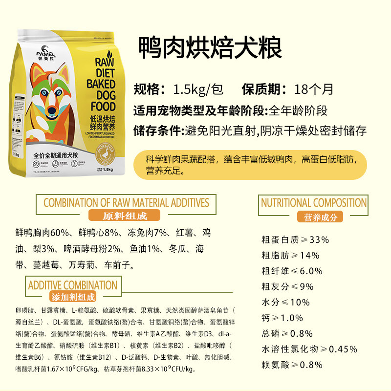 帕美拉鸭肉&梨低温烘焙狗粮通用型犬粮试用装