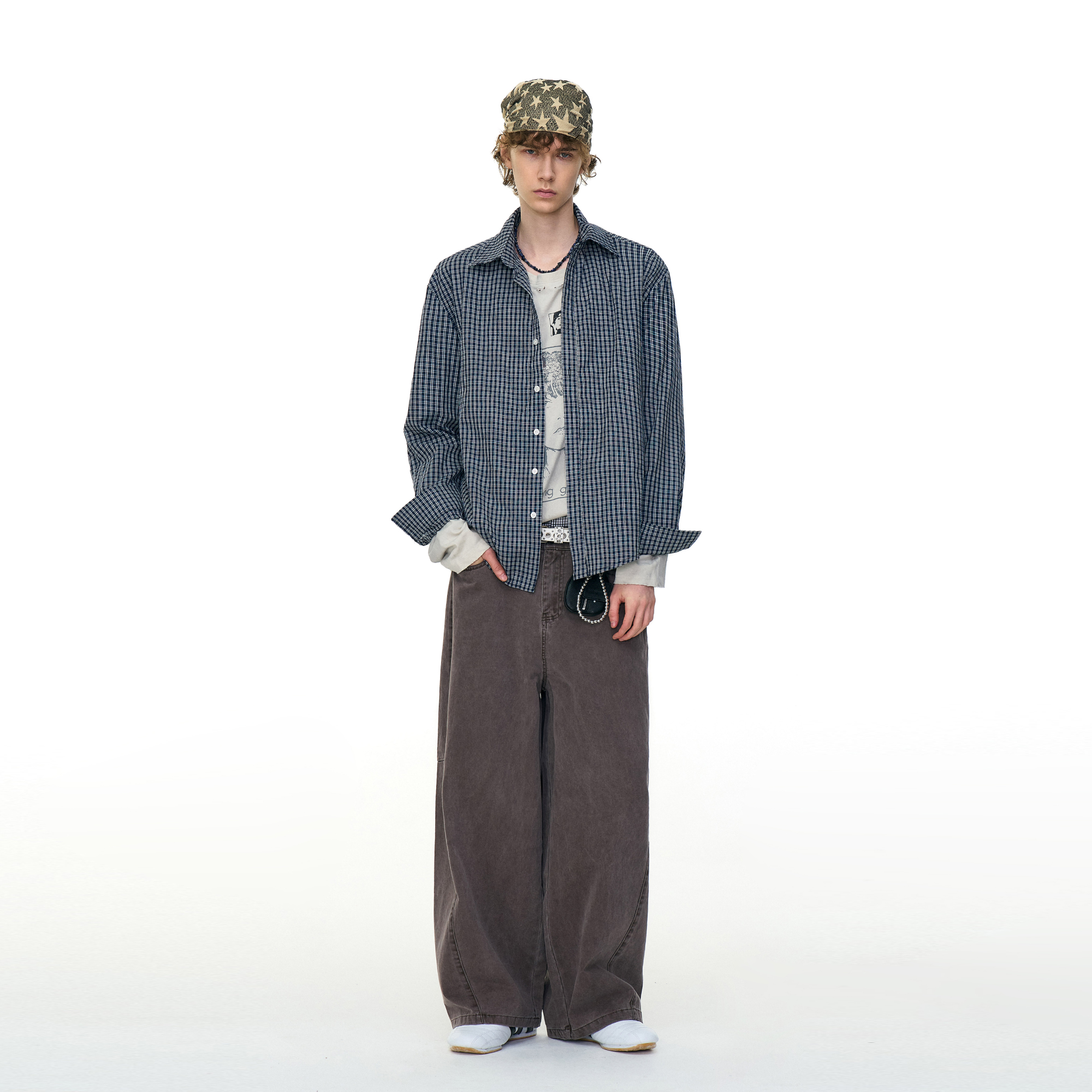 MRNEARLY美式复古经典格子衬衫男长袖秋季痞帅高级感情侣宽松外套