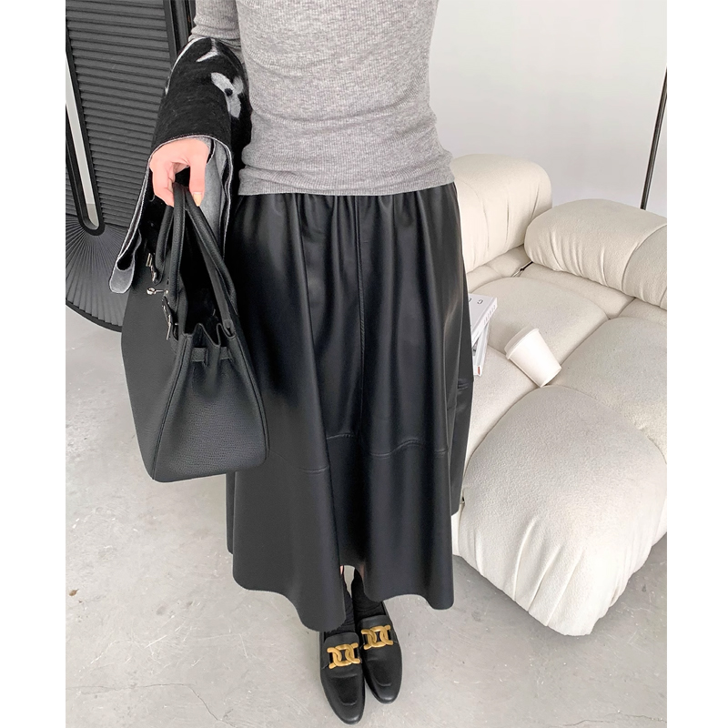 孕妇皮质半身裙秋冬季2025新款百搭宽松垂感长裙托腹显瘦休闲伞裙