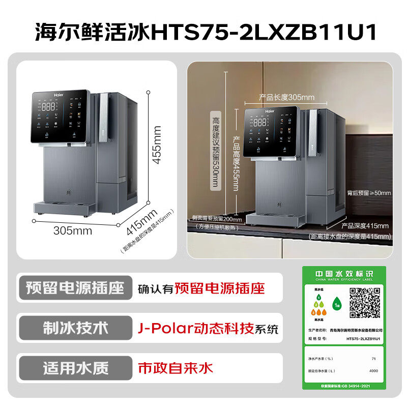 海尔鲜活冰台式净饮机制冰饮水一体冰块净水器即热净饮一体台式机