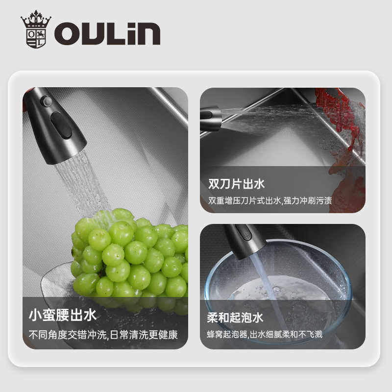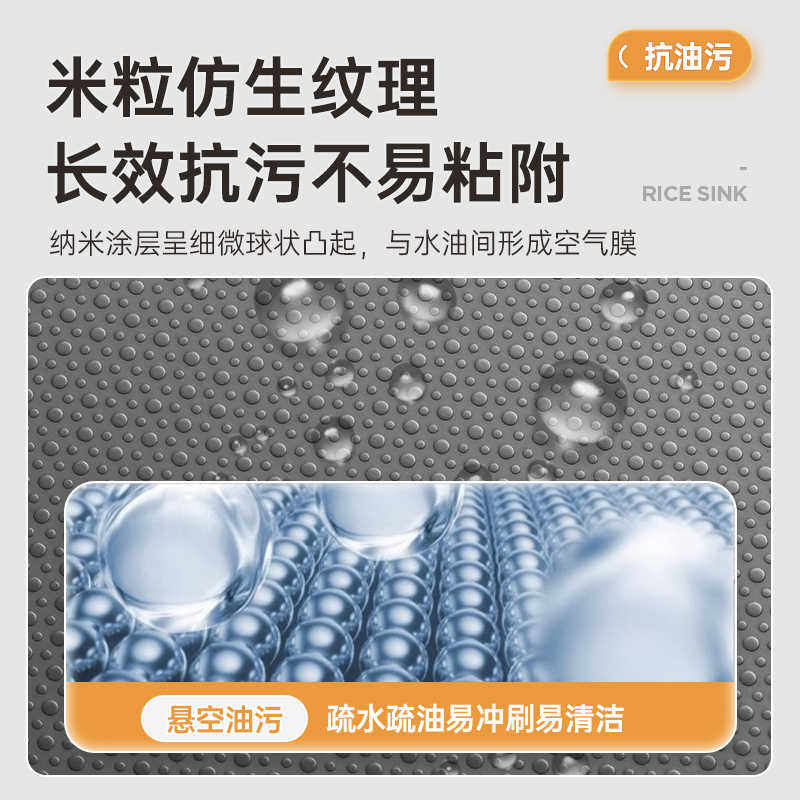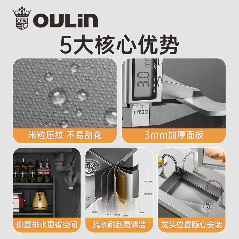 欧琳家用厨房水槽米粒压纹大单槽304不锈钢纳米轨道洗碗槽9143M