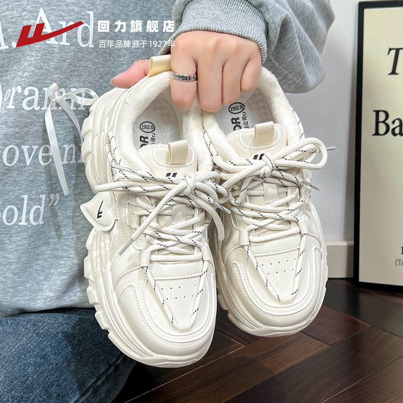 回力女鞋老爹鞋女2025冬新款爆款百搭加绒保暖运动鞋休闲厚底鞋子