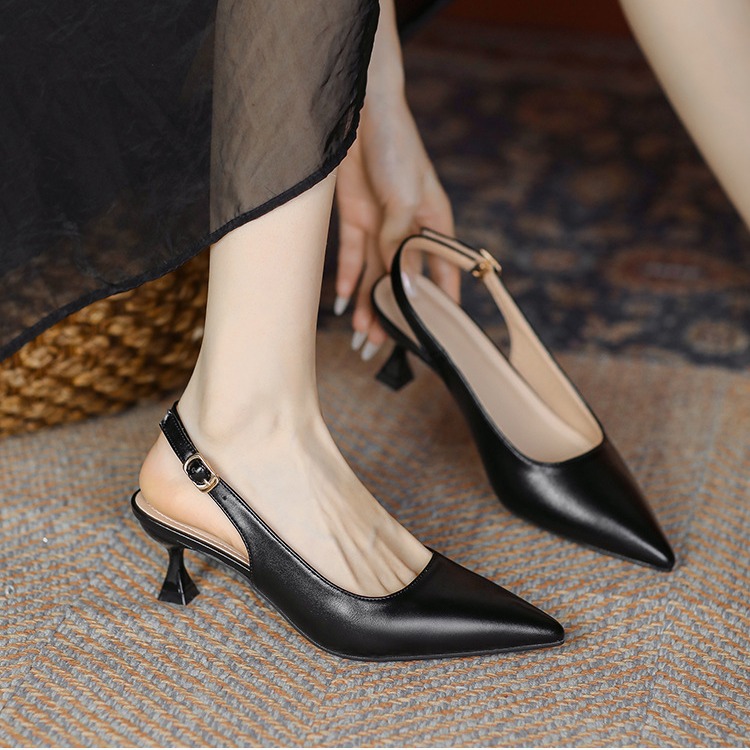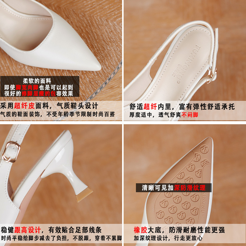 日本品质法式气质高跟鞋女夏季2025新款韩版包头凉鞋尖头细跟一字