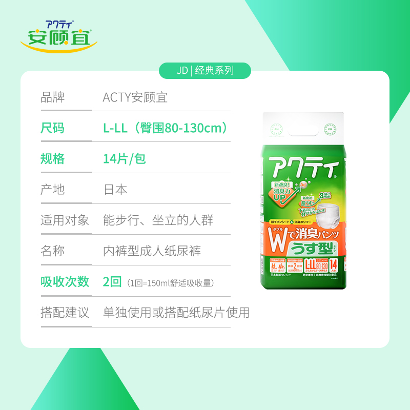 安顾宜日本进口成人纸尿裤拉拉裤老人用男女超薄老年尿裤XL加大号