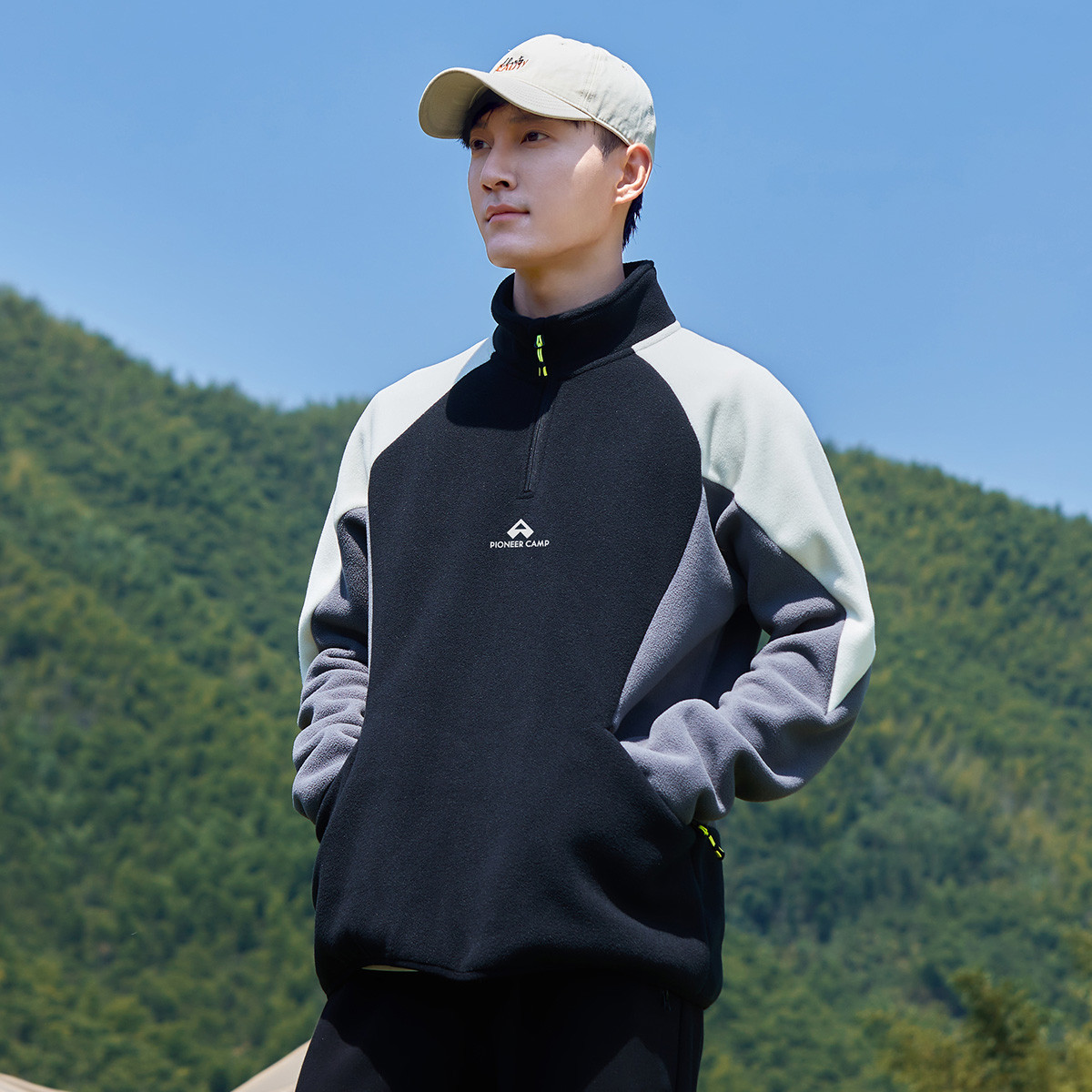 拓路者摇粒绒卫衣外套男款2025春秋冬季户外休闲加绒拼接套头上衣