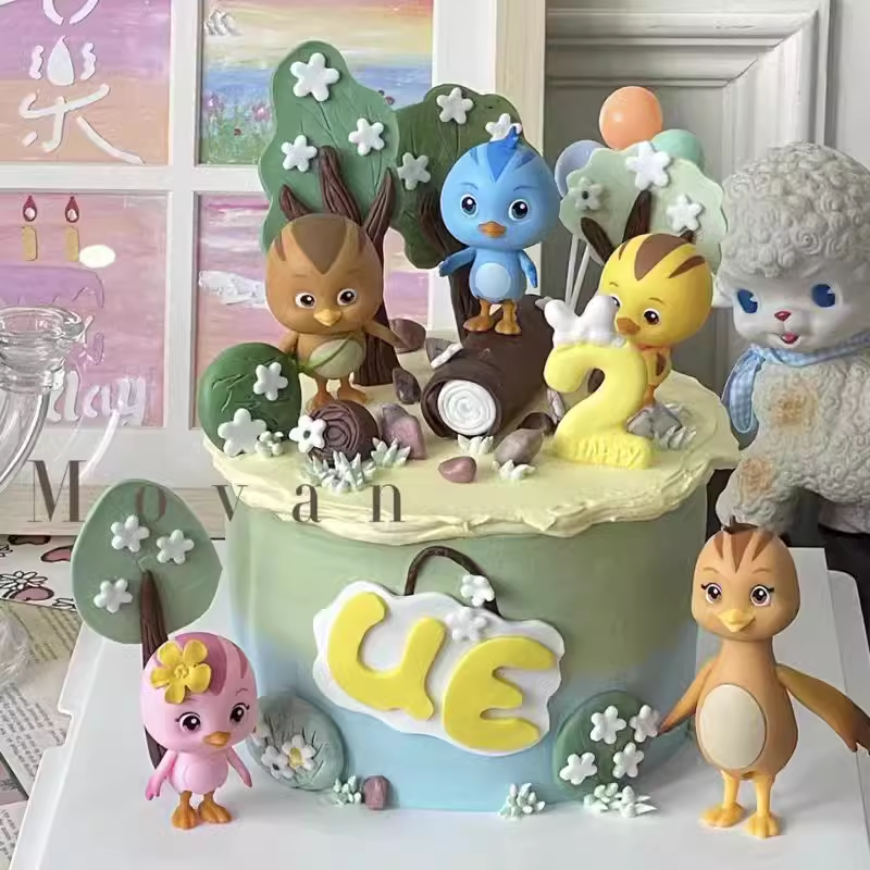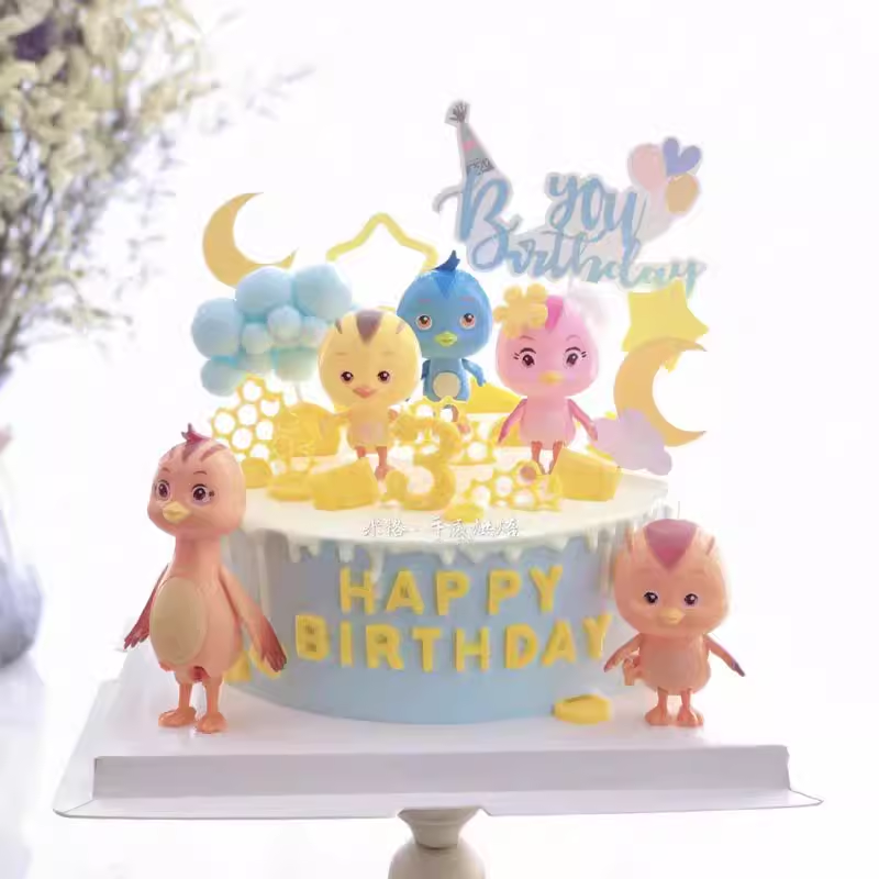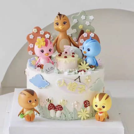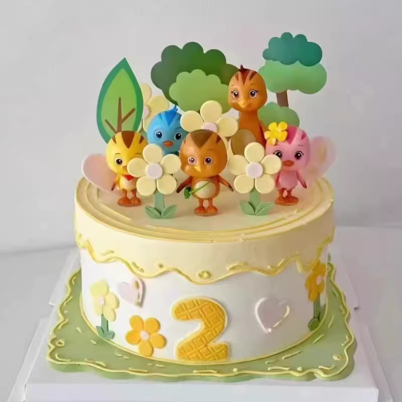 卡通萌鸡小队蛋糕装饰摆件森系花朵树木小朋友儿童宝宝生日装扮